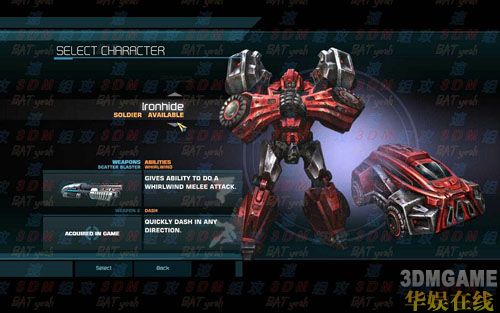 第八章可以使用的人物除了擎天柱之外,其余2个一个是IRONHIDE