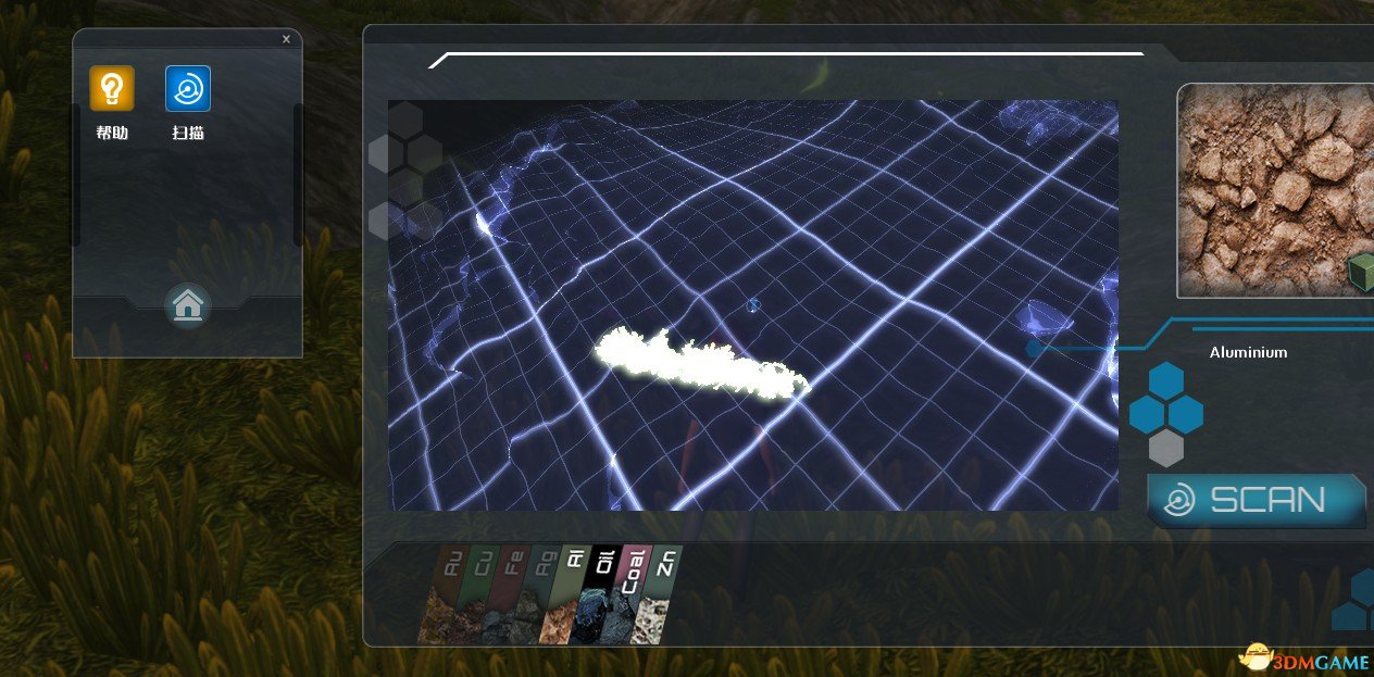 点开F1左上角有个扫描点一下他~出来图中的画面~然后图的左下角吧所有矿藏都点亮~然后点右下角的SCAN就可以扫描在图中了~这个玩意远了是扫不到的~