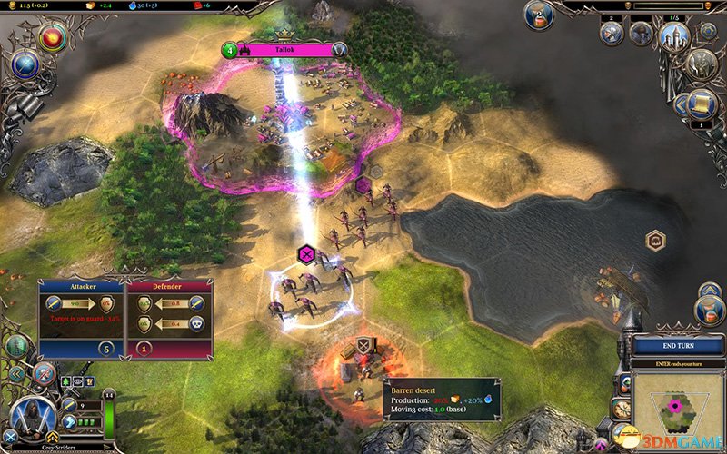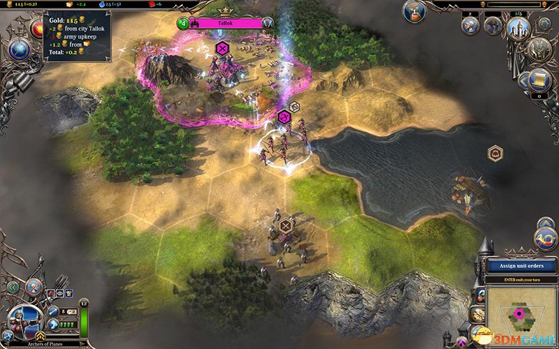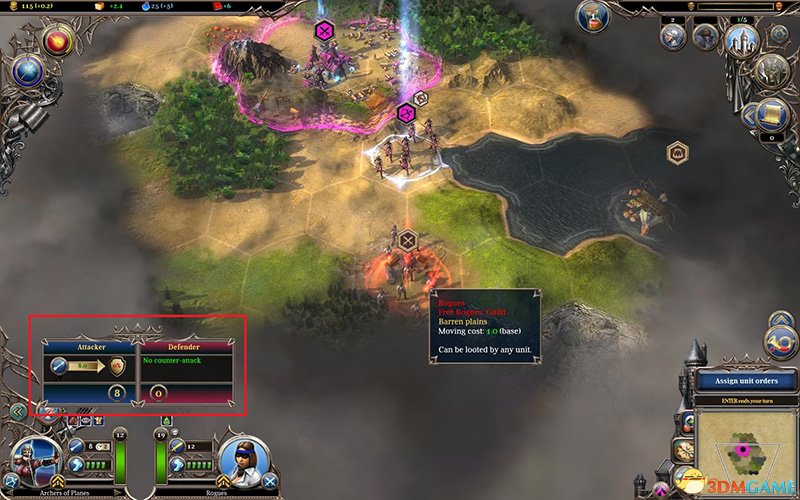 不同单位的作战距离不同,例如弓箭手可以隔着一个地块战斗。