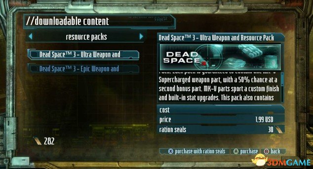 Ration Seals是《死亡空间3》中的虚拟货币,在工作台上按△/Y后会进入DLC的界面: