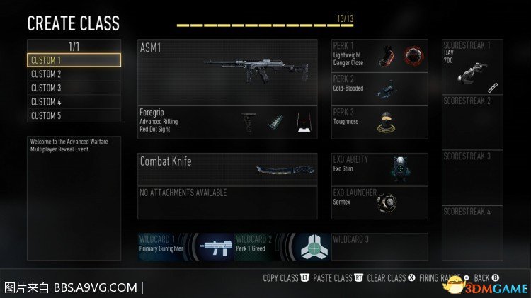 类似于黑色行动2的配装系统,玩家可以在共计23个自定义栏位中选择自己的武器、配件、技能、外骨骼能力、外骨骼投掷装备、连分奖励和外卡。