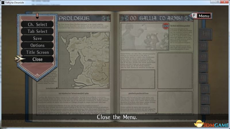 游戏内的主要界面,在这里玩家可选择不同的小节进行游戏,包括视频和战斗等多种内容。也可以按F键呼出选项菜单,或者按Tab键快捷进入相应的子菜单。