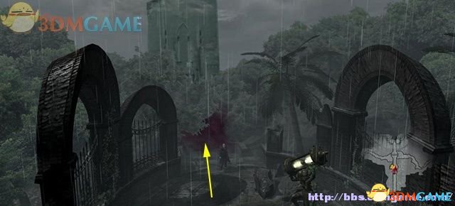 在宝石之河场景,进到河底桥洞的那团迷雾,来到荒废的教堂前。