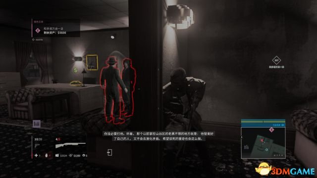 step6.前往会所二层的东北角可以找到这个会所的两名话事人,其中一人对话结束后会走出办公室,躲在办公室门旁将其撂倒。