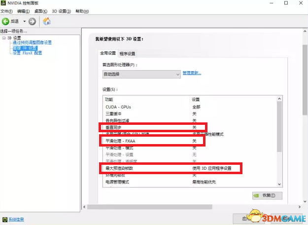 我的显卡是GTX1060 CPU是i7 6700 刚进入游戏后开车和视角转向都有些卡顿掉帧,后来我打开nvidia控制面板3d设置进行设置,垂直同步改为自适应 平滑处理-FXAA打开 最大预渲染帧数改为1 进入游戏后就算开了垂直同步和最高抗锯齿妥妥60帧!纵向丝滑一点也不卡,如果朋友们设置后还是卡顿那就是配置问题了。