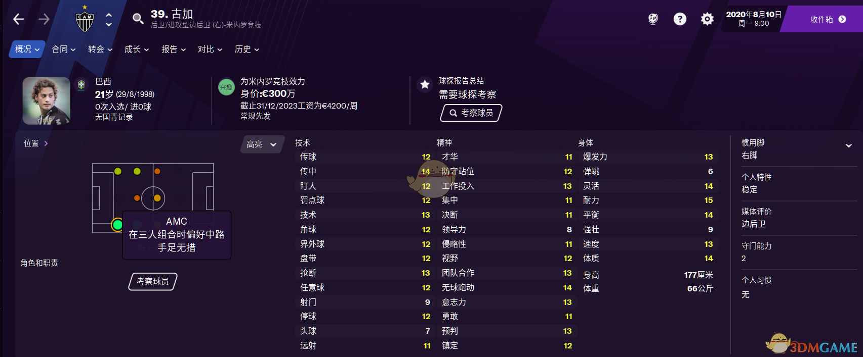 价格小贵,但这是一名毕业型的右边后卫,各项属性全在及格线上,而且潜力也很高,开档能买就买吧,有欧洲国籍