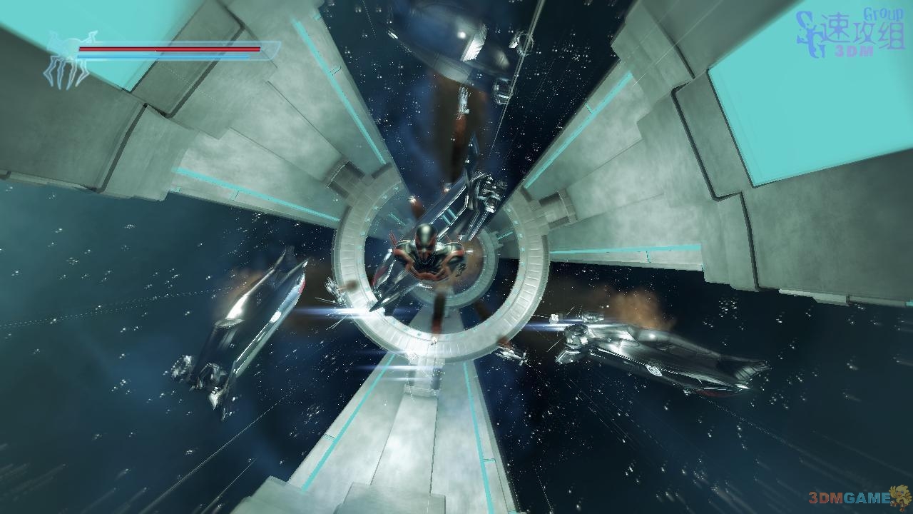 追BOSS的时候有几辆敌人飞船,还是按B直接踹烂,一路荡秋千到另一边的建筑。