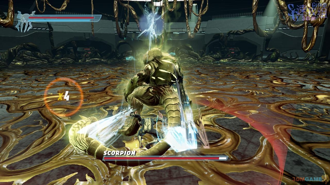 重复之前的打发,等BOSS没血的时候会最后一次到中间去扔蛋,我们把蛋扔回去后天花板会腐蚀掉,一片废墟掉下来砸死BOSS,