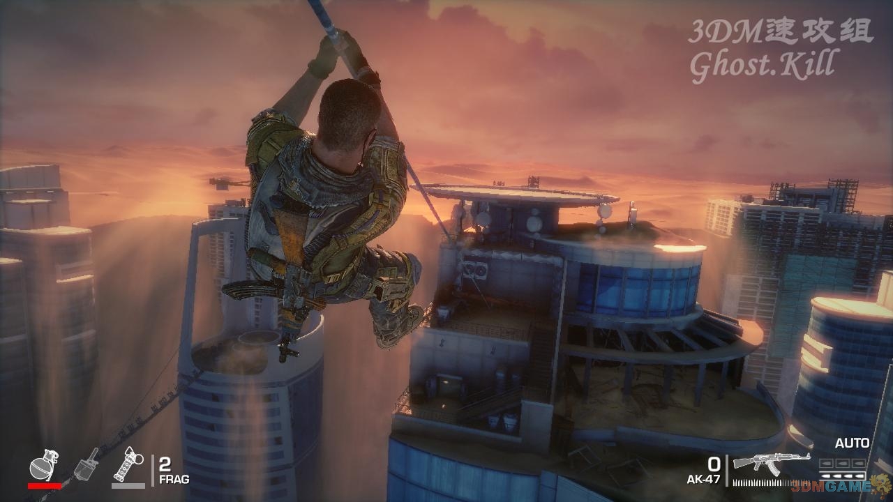 这一关也是DEMO的关卡,简单说下吧。乘滑索来来到敌人所在的建筑,清场之后用绳索下楼,